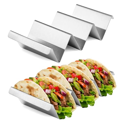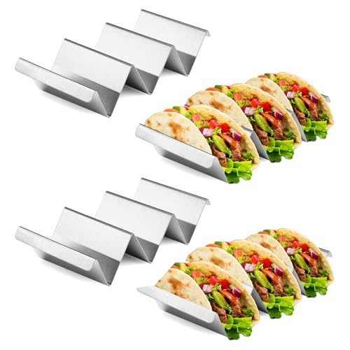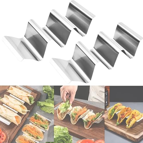 qhklew Taco hållare, hållare stativ i vågform, 4 pack tortilla-hållare med handtag, diskmaskinssäker och ugnssäker av rostfritt stål, för att hålla tacos, smörgåsar, hot dogs och pannkakor
