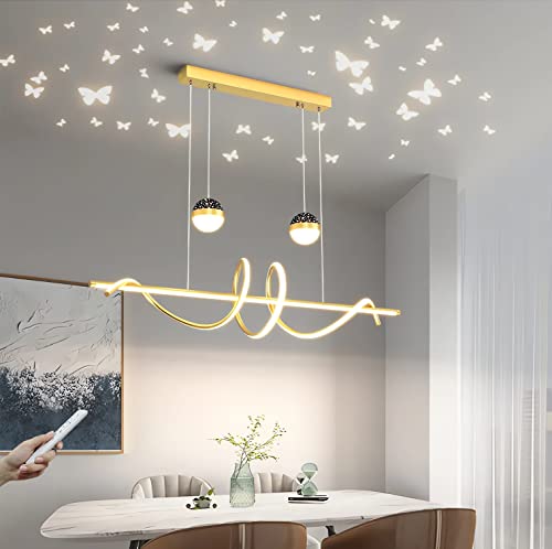 LED Hängande lampa Matbord Dimbar Hängande belysning Modern matsalslampa med fjärrkontroll Vågform Höjdjusterbar ljuskrona Matbordslampa Kontorskök Vardagsrumslampa (Guld)