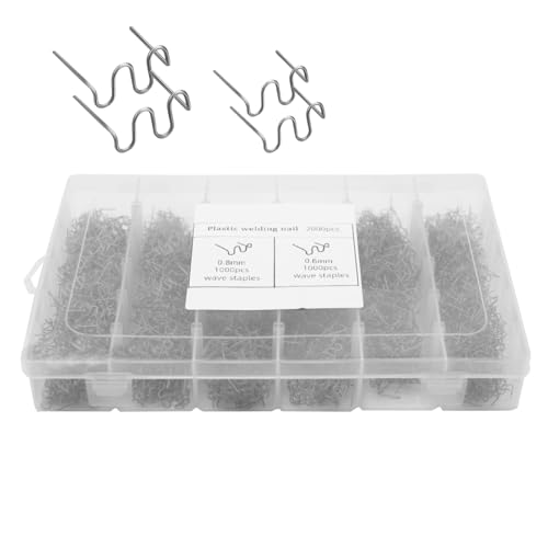 Gsakskdsap 2 000 st plastsvetsklistermärken, 0,8 mm/0,6 mm förskurna häftklamrar, vågform häftklamrar lödkolv för plast, plast svetsverktyg för bil stötfångare reparation