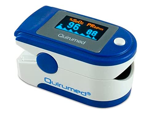 QUIRUMED Bärbar pulsoximeter syremättnad (SpO2) och pulsmätning med pletymografisk vågform, pulsmonitor, LED-display, omedelbar avläsning