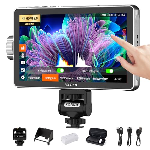 VILTROX DC-A1 2800 Nit kameramonitor, 7 tum HD 1920 x 1080 IPS pekskärmskamera fältmonitor med 4K HDMI 2 in/ut, 3D-lampa, fokusskärning, videohjälp, HDR full vågform, F550-batteri
