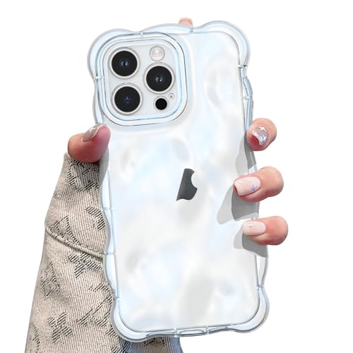 UEEBAI-fodral för iPhone 15 Pro Max 6,7 tum, söt färg, lockig vågform, stötsäker, mjuk TPU-stötfångare, telefonfodral, oljeblomma vattenkrusning 3D silikon, tunt, vackert fodral icke-gulnande fodral,
