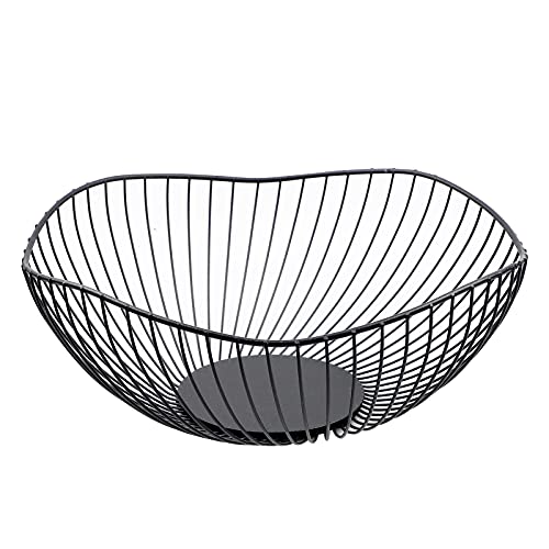EXLECO Fruktkorg med vågform, metallfruktkorg, modern dekorativ fruktskål, mellanmålskorg, förvaringskorg för frukt, grönsaker, bröd (26 x 26 x 10 cm)