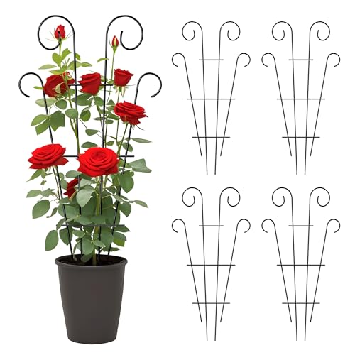 Thealyn 4-pack 60 cm/23,6 tum inomhus växtspaljé för krukväxter klättring, utomhus metall trädgård spaljé krukväxter blommor klätterväxt murgröna, vågform, svart