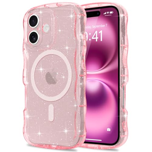Pepmune Glitter mobiltelefonfodral för iPhone 16 fodral transparent vågform silikon fodral vågdesign TPU stötfångare stötsäkert skyddsfodral för kvinnor och flickor för iPhone 16