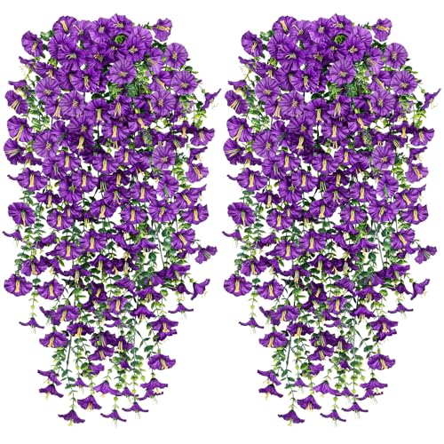 Fycooler 2 st konstgjorda hängande blommor, UV-beständiga falska hängande växter blombukett hängande vinstockar växter hängande växter för vägg hem trädgård gård uteplats bröllop inomhus utomhus