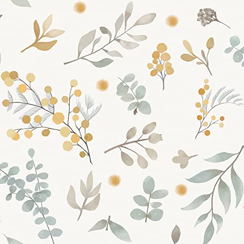 CiCiwind Självhäftande tapet, blommig grön tapet, 40 x 600 cm, med blad och blommor, möbelfolie, avtagbar vinylfilm för vardagsrum, sovrum, kök, vägg och skåp, dekoration