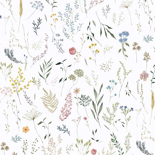 VEELIKE Fototapet blommor vit tapet blad akvarell blomma tapet vintage skåppapper självhäftande tapeter blommotiv möbelfolie mönster självhäftande film vägg dekoration sovrum 44,5 cm × 300 cm