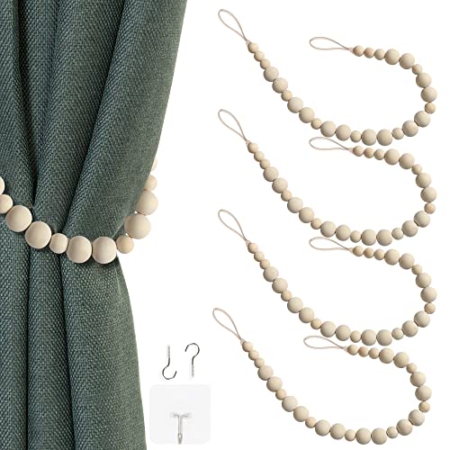 4 st gardinbindningar i trä gardinband gardinhållningar gardin knytband gardin knytband med krokar för hem vägg högtid dekoration (träfärg, 4)