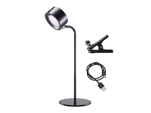 BEPER P201UTP301 Trådlös Läslampa, 3 Användningsområden: Bords-, Vägg- och Klämlampa, 2.3 W, Uppladdningsbar USB-C, 3 Ljusfärger, Svart