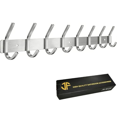 JOLY FANG Kroklist rostfritt stål garderobskrokar borstade klädkrokar vägg garderobslist för sovrum badrum kök (silver, 8 krokar)