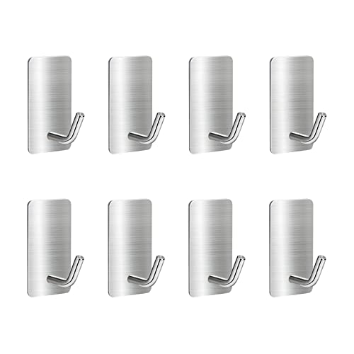 Giookuj Självhäftande krok silver rostfritt stål SUS304 krokar självhäftande handdukskrokar självhäftande väggkrokar för vägg, sovrum, badrum, kök 8 förpackningar