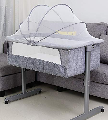 OHMG 3-i-1 babysäng, sidosäng med förvaringskorg, vagga, höjdjustering och justering av madrassens lutning, 4 hjul med broms, ergonomisk madrass, justerbar, bärbar