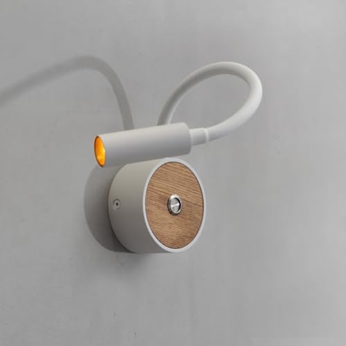 ouglres LED-vägglampa med strömbrytare, modern vit vägglampa, svanhals lä vägglampa inomhus för säng sovrum trapphus matsalsspegel badrum vardagsrum väggbelysning, varm vit, 2 W/3 000 K