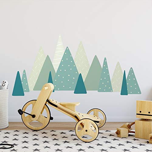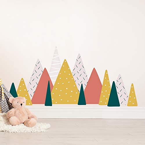 Färgglada berg landskap, skandinavisk stil, väggklistermärken för barn, mönster, berg dekaler, barnkammare, babyrum, skog, äventyr, väggdekor
