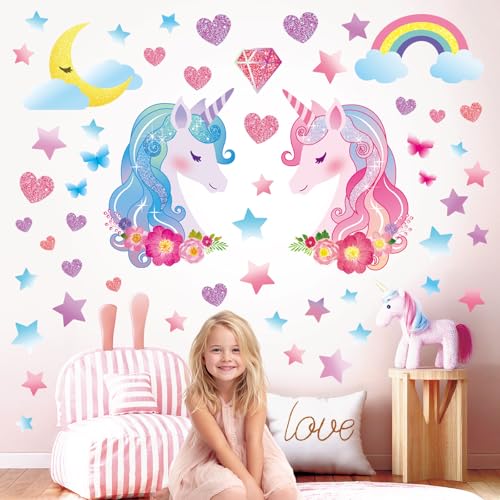 DECOWALL DSL-8068 Väggdekor Unicorn Barn Väggdekal Nursery Baby Nursery Girl Rainbow Color Hemma Häst Rosa ljus