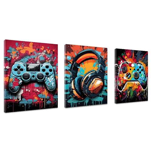 BGFCE 3 st spelrumsdekor neon spelaffischer väggkonst speltillbehör tema canvas tryck spelkonsol målning bild för barn ungdomar spel pojkar sovrum tonåring väggdekor utan ram 30 cm x 40 cm x 3 cm