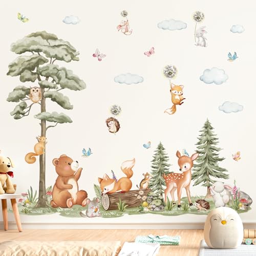 decalmile Väggklistermärken djur skog träd stor väggdekal barn björn rådjur räv väggdekor baby barnkammare barnrum