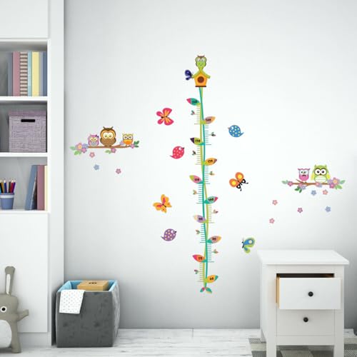 Höjdtabell, skog, väggdekor, barnkammare, babyrum, barn, sött barnrum, väggklistermärken för barn, mönster, skogsmark och äventyr