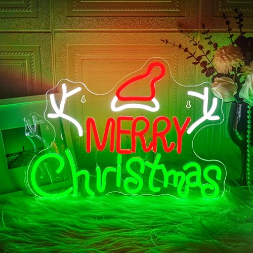 God jul-neonskylt, gröna, röda bokstäver, neonljus med strömbrytare, väggdekor, LED-neonljusskylt för julfest, nyår, högtidsdekoration, present till barn, familj
