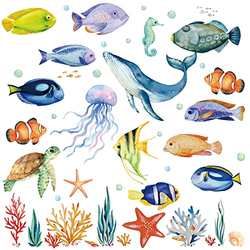 Decalmile Under The Sea väggklistermärken tropisk fisk manet hav väggdekaler baby barnkammare barn sovrum badrum väggdekor