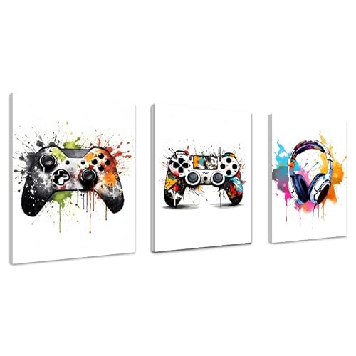 3 St 40 * 30 cm Inramade Spelrumsdekor Kanvas VäGgkonst Videospel Konsttryck, Speltema Akvarell Affischer Tryck för Pojkar Barn Tonåring Spelrum Sovrum Lekrum Väggdekor (12 x 16 tum, färgglad)