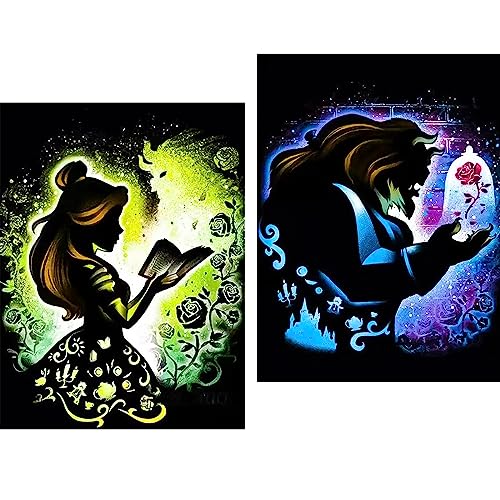 YALKIN 2-pack diamantmålningssatser för vuxna, 5D gör-det-själv diamantkonst prinsessa 30 x 40 cm hel rund borrfärg efter nummer kit för vuxna, nybörjare, barn, hem, väggdekor jul