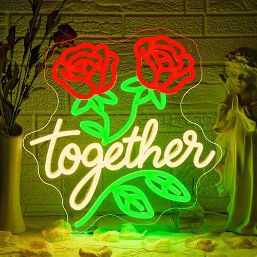 Looklight Red Rose Flower Together neonskylt, neonskylt för väggdekor, LED-skylt rumsdekoration lysande skyltar för bröllop årsdag alla hjärtans dag förlovningar jul presenter, 32 x 33 cm
