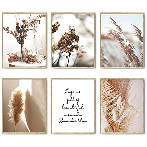 Natur landskap växt väggkonst tryck uppsättning av 6 canvasmålning minimalistisk botanisk väggdekor bilder vass torkade blommor växter tryck affischer set för vardagsrum sovrum dekoration heminredning