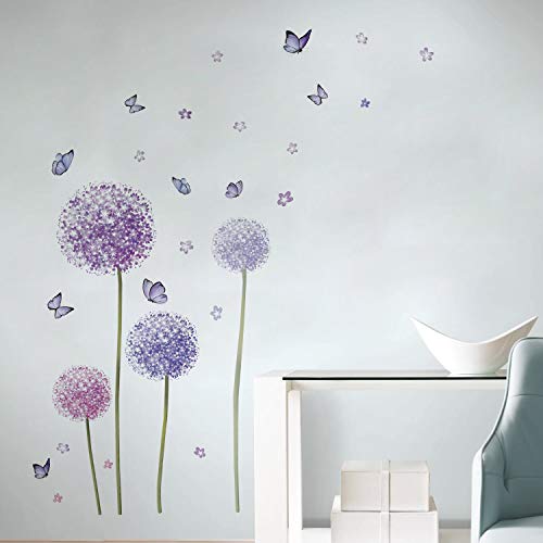 Runtoo blomma väggklistermärken maskros fjäril väggdekaler för sovrum vardagsrum dekoration väggdekor