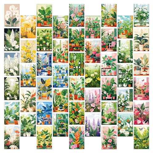Set med 50 st blommor botaniska vykort – natur akvarellstil, akvarellblomma och växtkonstkort för väggdekor, scrapbooking, gratulationskort, heminredning