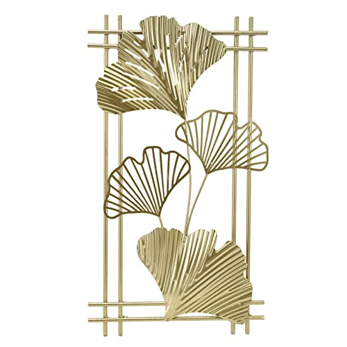 Guld Metall Väggdekor Gyllene Löv Vägghängande Dekor Konstskulptur med Ram för Vardagsrum Office Home Hotel