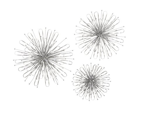 Benzara attraktiv metall väggdekor, järn, slät silverfinish, set med 3, 24 tum, 20 tum och 16 tum diameter