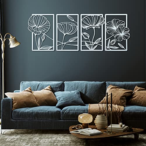 4 st metalllinjer konst väggdekor för vardagsrum metall blomma minimalistisk skulptur modern estetisk vallmo blommigt tema minimalistisk vägghängande sovrum hem kök badrum 40 x 30 cm (vit)