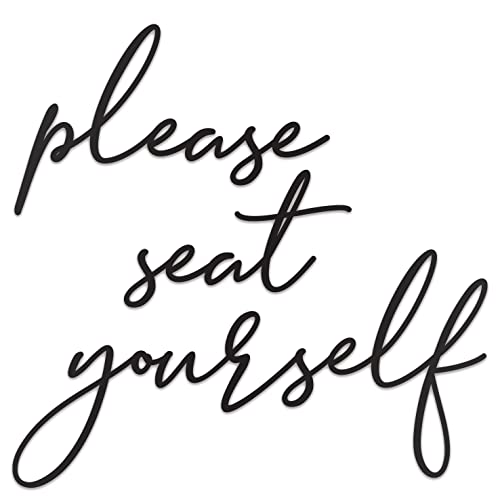 Vivegate 'Please Seat Yourself' metall väggdekor – 40 x 40 cm svart modern 'Please Seat Yourself' metall badrumsskylt för att hänga hem väggdekor