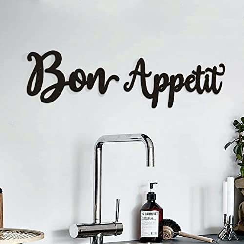 Vivegate Bon Appetit Väggdekor i metall - 43 cm x 30 cm svart bondgård modern söt stor Bon Appetit metall väggkonst för hängande köksskyltar väggdekor