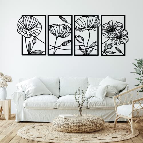 4 st metalllinjer konst väggdekor för vardagsrum metall blomma minimalistisk skulptur modern estetisk vallmo blommigt tema minimalistisk vägghängande sovrum hem kök badrum 40 x 30 cm (svart)