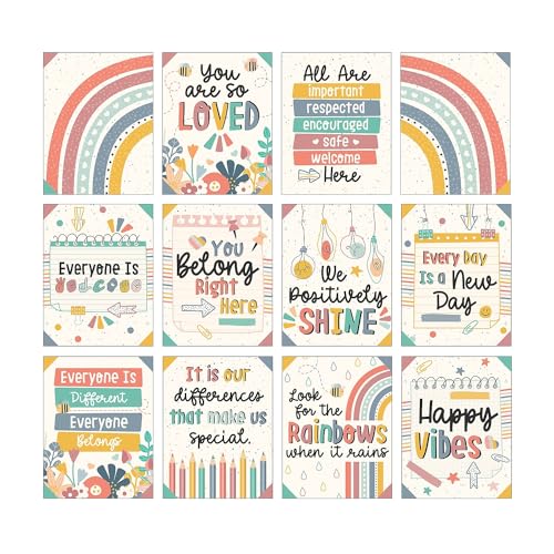 Carson Dellosa We Belong Boho-regnbåge, motiverande affischset, 12 affischer, inspirerande väggkonst för anslagstavla, regnbågsdekor, väggdekor, daghem och klassrumsdekor