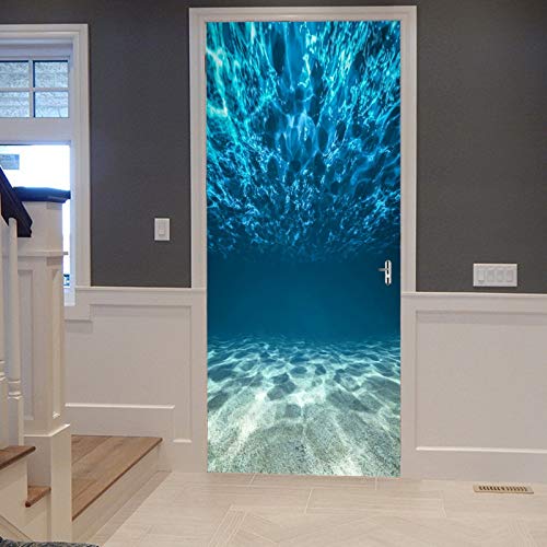 A.Monamour 3D-dörrklistermärken för innerdörrar djupt in i havet blå marin värld undervatten naturkonsttryck vinyl vattentät självhäftande dörr väggdekor dekal för sovrum kontor badrum 77 x 200 cm