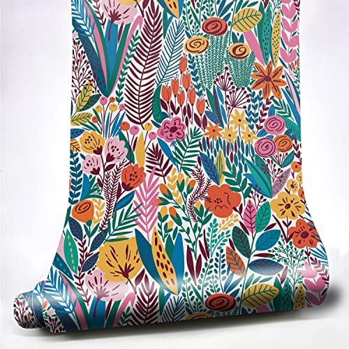 Alwayspon 40 cm x 500 cm blommig självhäftande tapet, skala av och klistra på möbelklistermärke, bänkskiva, garderober, täcker klibbig baksida, vinylfilmrulle för väggdekor