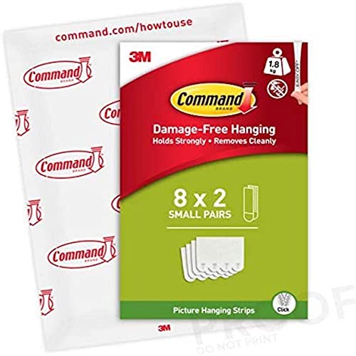 Command Små tavelhängningsremsor, värdepaket – 8 par (16 remsor) självhäftande remsor i vitt – för bilder, ramar, speglar, väggdekor – skadefri upphängning