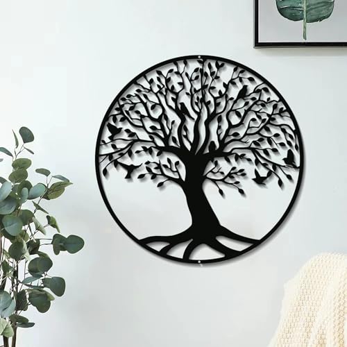 RESACO Livets träd väggkonst metall träd liv väggdekor familjeträd vägg plakett 38 cm livets träd vägg hängande för badrum kök vardagsrum sovrum inomhus utomhus (svart)