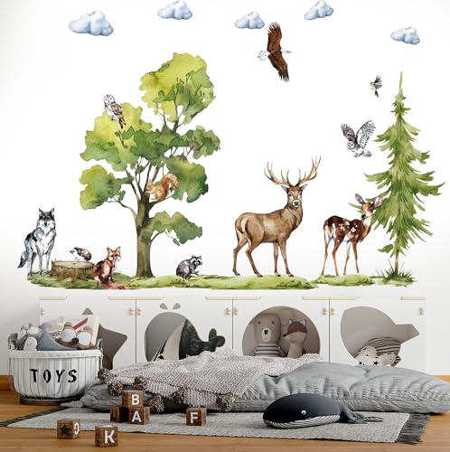 decalmile Väggklistermärken djur skog träd stor väggdekal barn björn rådjur räv väggdekor baby barnkammare barnrum