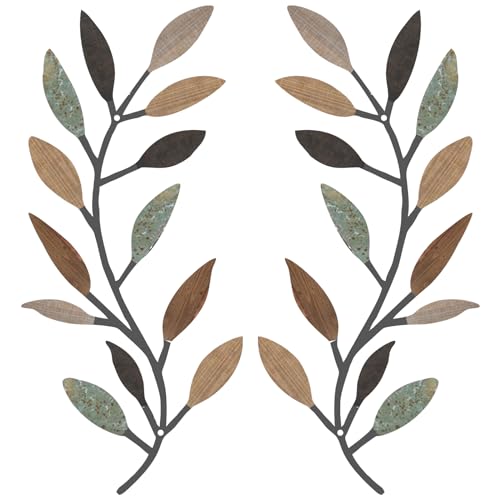 Zhengmy 2 delar metall träd blad väggdekor vinröd olivgren blad väggkonst smidesjärn rulla över sängen, vardagsrum, utomhusdekoration (klassisk färg)
