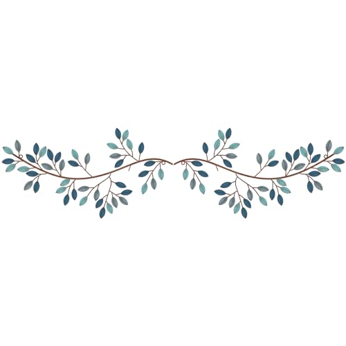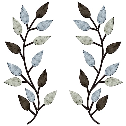 Hotop 2 delar metall träd löv väggdekor vinröd olivgren blad väggkonst smidesjärn rullning skulpturer ovanför sängen, vardagsrum, utomhusdekoration (blå, klassisk stil)