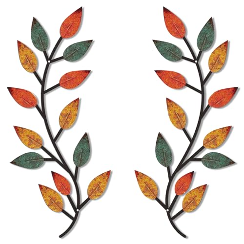 Zhengmy 2 delar metall träd blad väggdekor vinröd olivgren blad väggkonst smidesjärn rulla över sängen, vardagsrum, utomhusdekoration (färgglad)