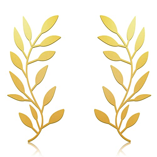 Zhengmy 2 delar metall träd blad väggdekor vinröd olivgren blad väggkonst smidesjärn rulla över sängen, vardagsrum, utomhusdekoration (guld)