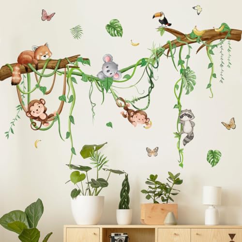 Runtoo skogsdjur väggdekaler apa koala träd gren väggklistermärken barnkammare barnrum klassrum väggdekor