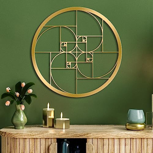 WINUSD 30 cm Fibonacci spiral metall väggkonst, matematikkonst Fibonacci spiral guld väggdekor, metall väggdekor för vardagsrum kontor utomhus inomhus nyårsgåva (1)