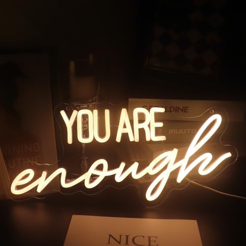 You Are Enough neonskylt ord/bokstäver USB-driven med dimmeromkopplare neonljus för rum hem bar konst väggdekor fest fönster vardagsrum dekor vägghängande dekoration (varmt vit)